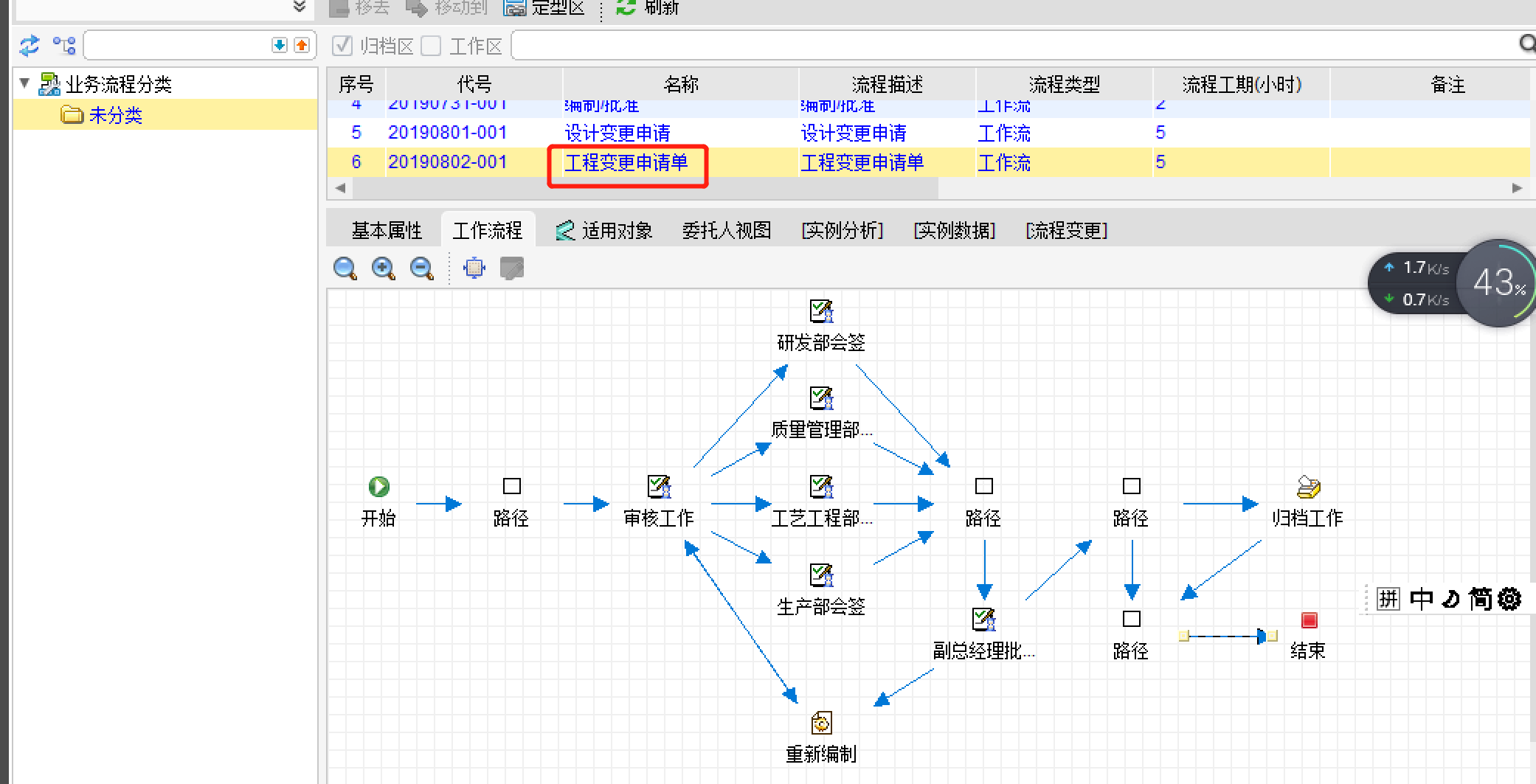 针对PLM系统的不同的对象,例如项目、产品、零部件、图纸、模型等建立对应的签审流程并在签审节点中绑定对应的签审人员,方便设计人员快速选择签审流程。