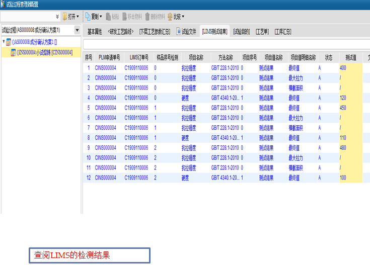 PLM给LIMS系统发送实验申请单以及相应的数据,LIMS检测完成后反馈测试结果给PLM,形成研发实验数据闭环管理。