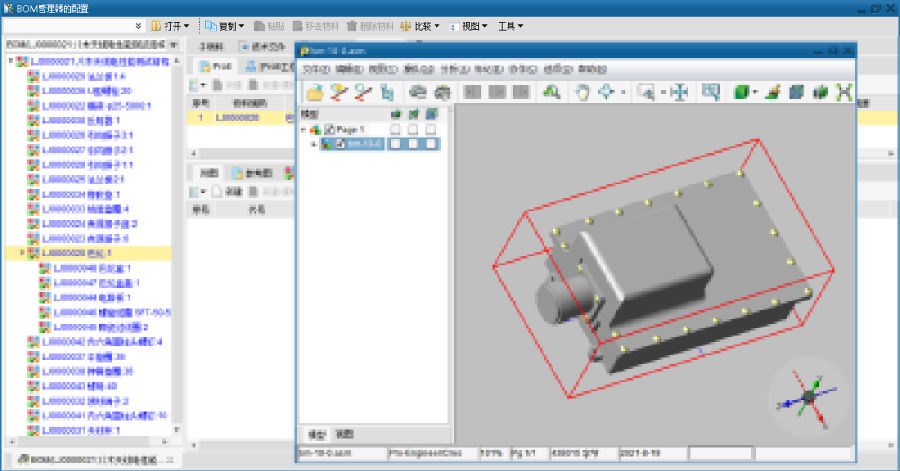3) 以BOM为中心实现技术资料(含图纸)关联管理,并保持产品3d模型数据、2d数据,PLM系统数据的互联互动。