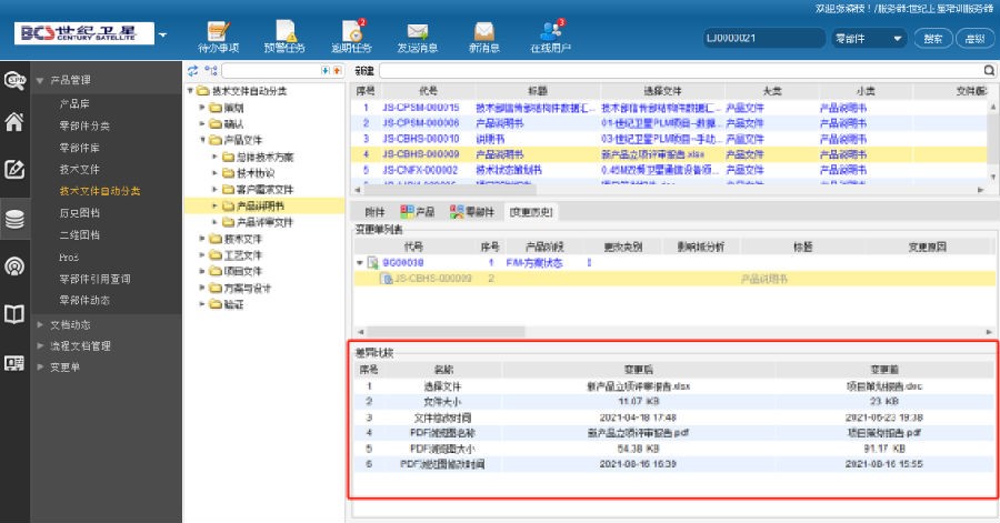 世纪卫星在实施PLM管理前,设计变更后,电子档无法保障最新有效,变更历史追溯困难。