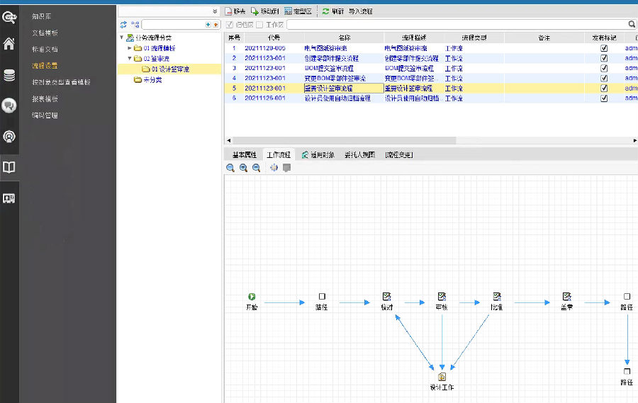 利用SIPM/PLM系统的图形化签审流程功能,将优化后产品数据审核流程通过系统进行固化,建立了设计文档数据标准化要求,同时图形化的工作流可以直接打开文档、图纸审核查看并清晰的监控签审流程的进度,保证了产品开发图纸、文档按标准化要求进行控制,确保产品的质量可靠性。