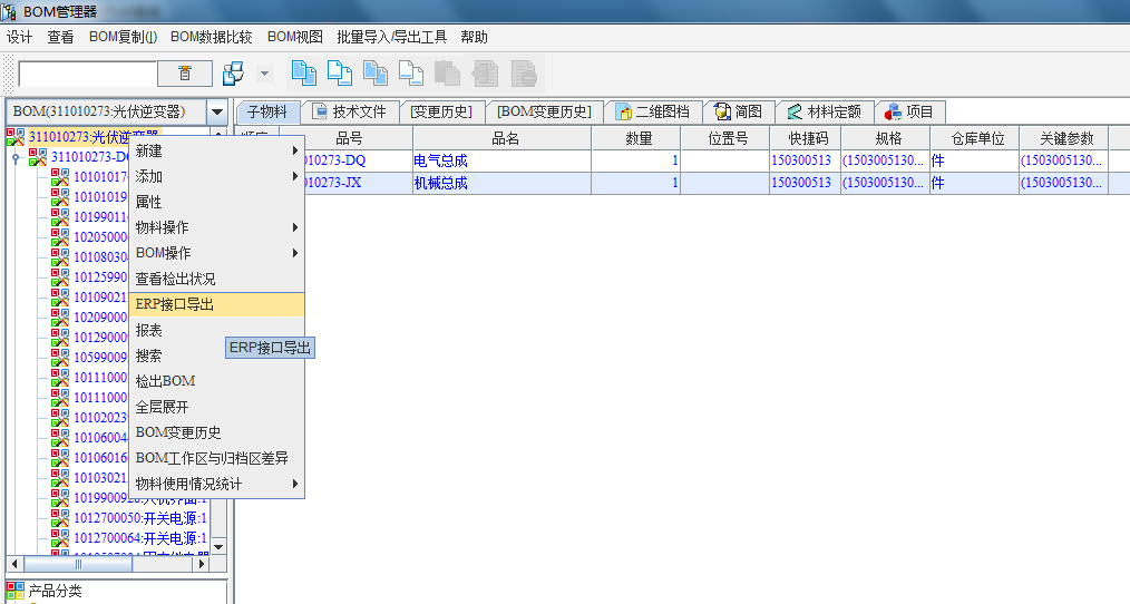 1)通过SIPM/PLM提供的ERP接口解决方案,工程师可以自定义将审核归档的物料信息、BOM信息、BOM变更信息进行导出,并且实现ERP系统自动接收数据和实现数据重组;通过此接口:其一可以避免数据通过人工录入ERP系统造成的数据错误和低效。其二可以保证物料从源头到最终进行生产排除人为干扰,保证数据的一致性和正确性。