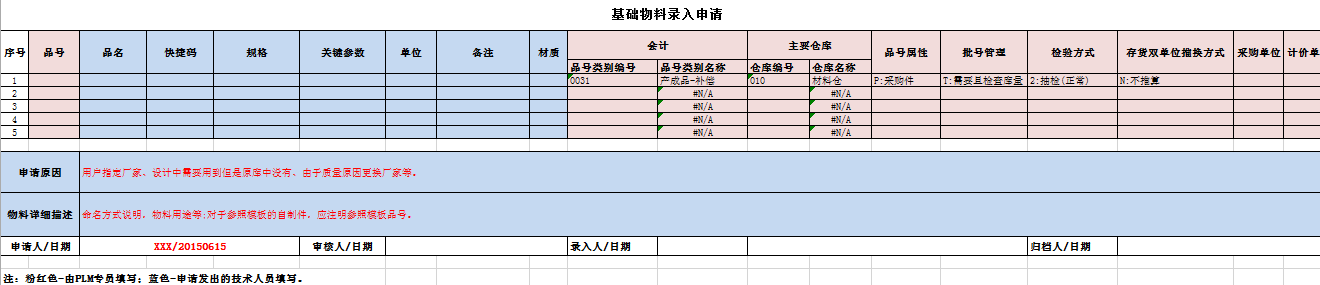 图二:物料申请表