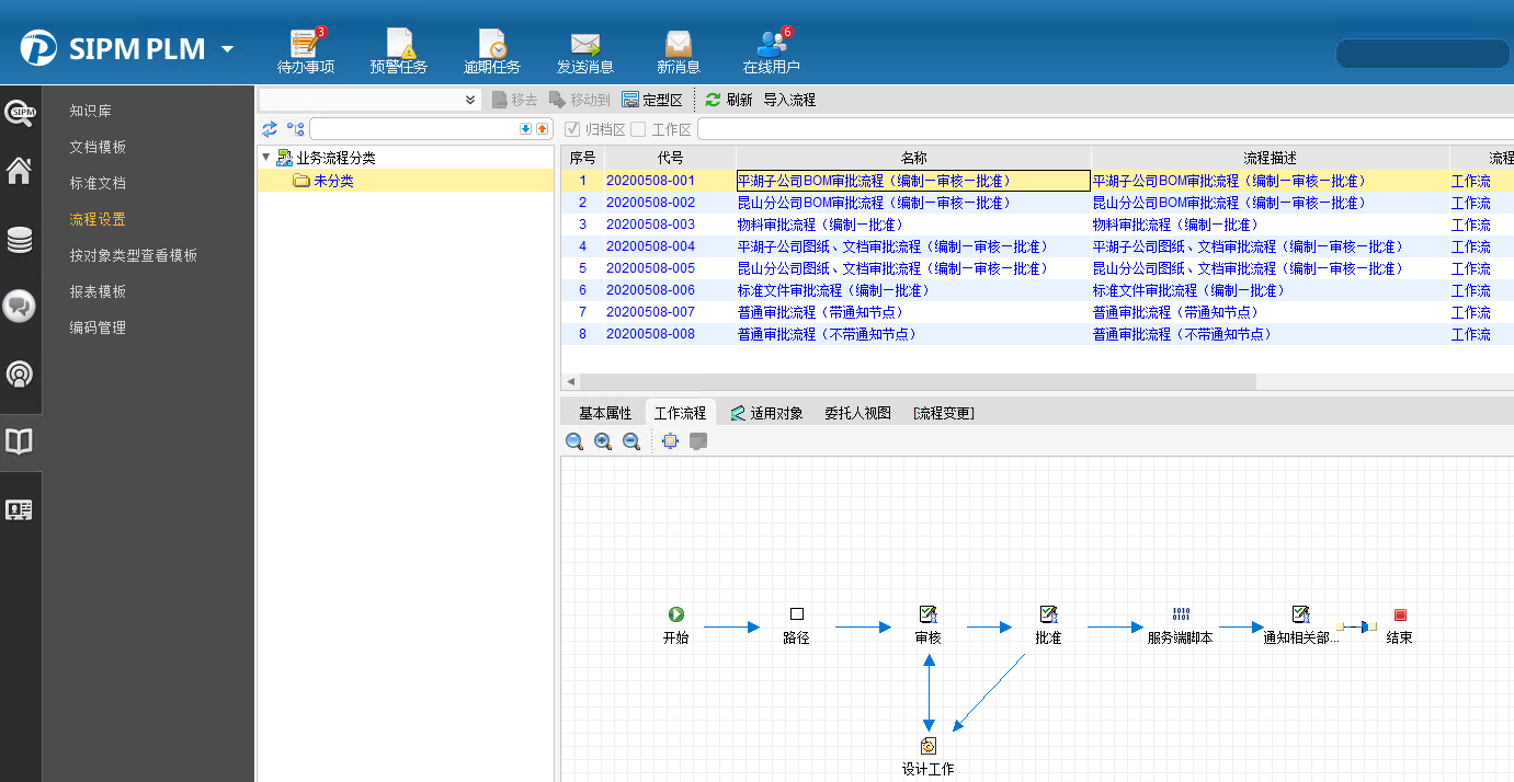 针对物料、BOM、图文档,根据阿莱德不同的分公司,在系统中制定了不同的签审流程,保障了产品数据的正确性