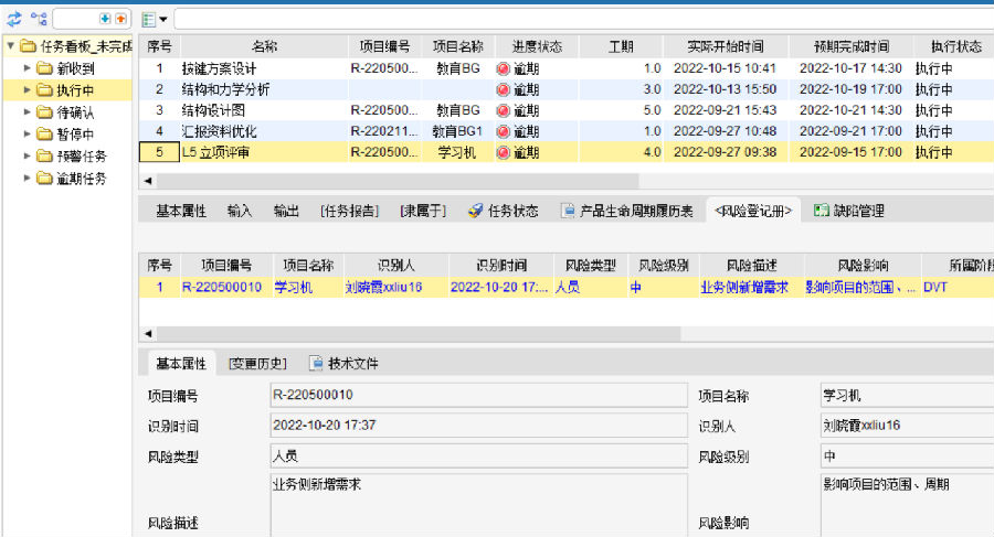 识别人可在项目或在项目计划下达的任务中及时填写风险登记册,自动与项目关联,项目经理可随时查看、维护项目风险的状态,及时处理识别出的问题,保障项目的顺利推进;