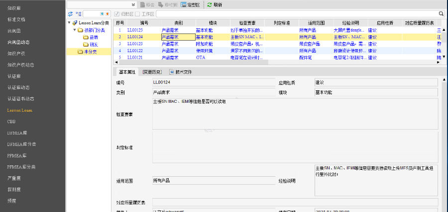 利用SIPM/PLM标准化管理模块,建立LessonLearn,将LessonLearn做为知识库固化下来,实现企业的知识积累,有权限的角色可随时查阅,达到实时共享,将企业知识高效传承的效果。