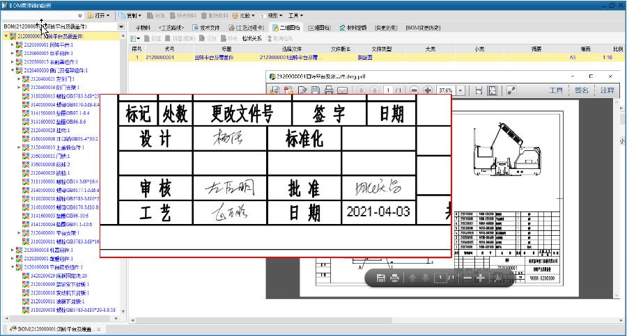 实现产品BOM、三维模型及图纸的一体化有机关联管理。