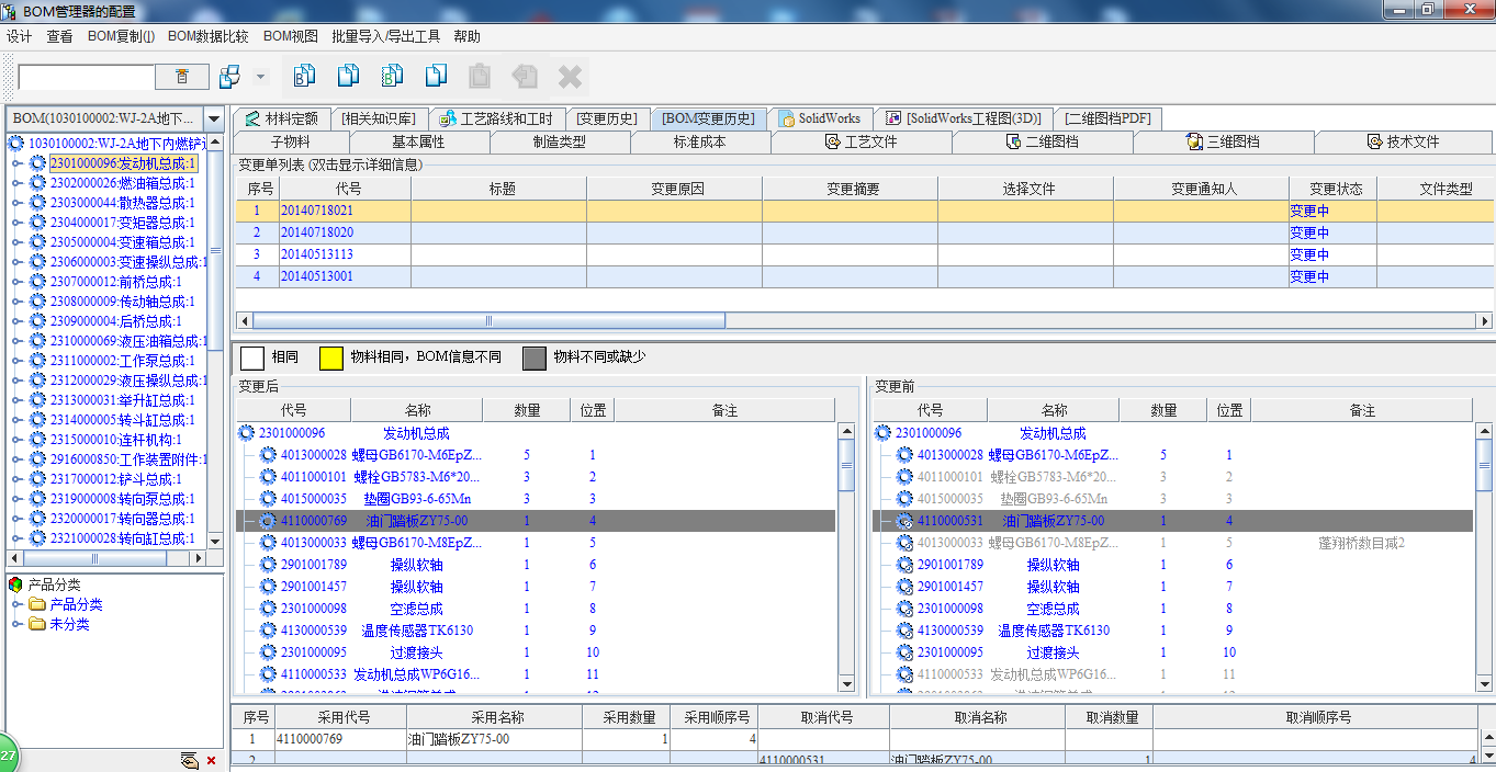 设计BOM变更历史展现
