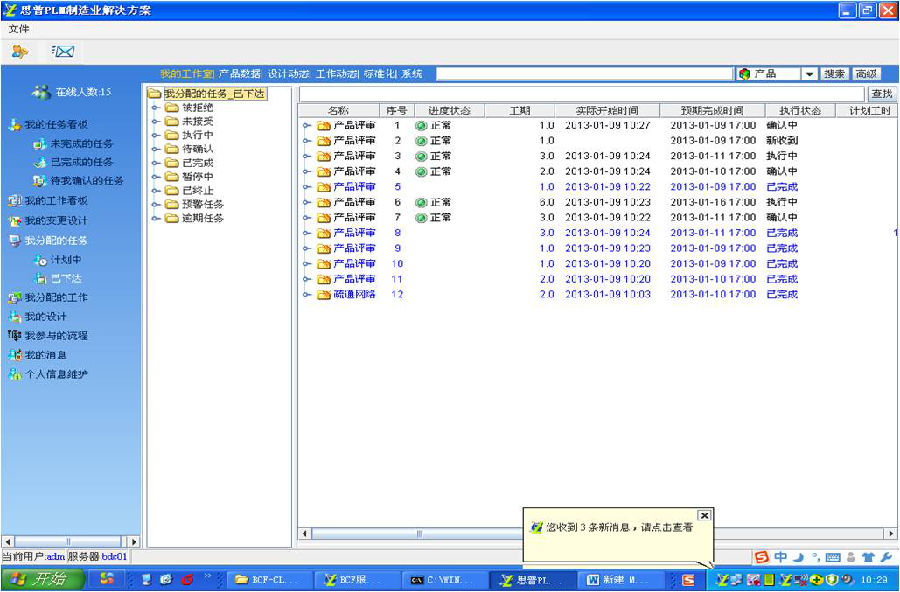 SIPM/PLM工作看板管理融合精益制造和精益研发管理思想,倡导工作目视化,即设计师只要打开工作看板就可以通过颜色区分任务的状态,根据任务状态合理安排自己的工作时间,有效提高工作效率。工作看板管理模块包括个人工作看板和领导工作看板两个方面。