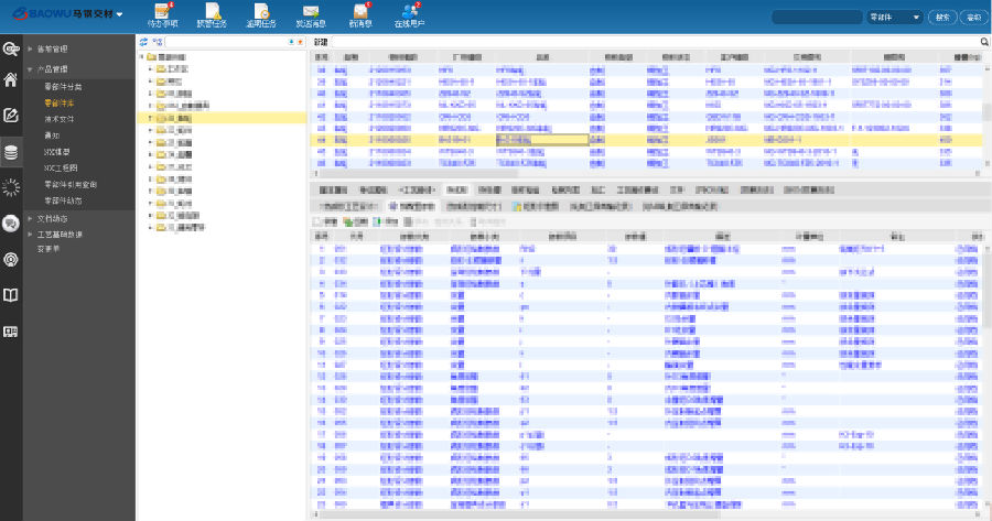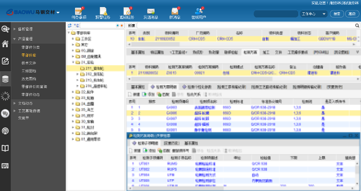 3) 以BOM为中心实现技术资料(含图纸)关联管理;以工艺基础库为数据基础,快速生成结构化工艺数据,一键式生成工艺操作要点;打通技术数据和产销系统、QMS系统的互通。