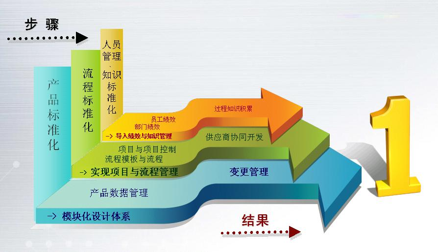 第一期:实现对产品数据模型的建立和管理,打通设计、工艺、ERP之间的数据流,实现所有产品设计和工艺本身管理的信息化。