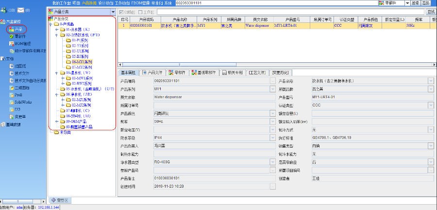 6. 利用SIPM/PLM系统编码管理模块,建立吉之美编码体系,根据零件所填信息自动生成编码,从源头上杜绝了一码多物的可能性,保证从设计源头到下游生产一码贯穿始终。