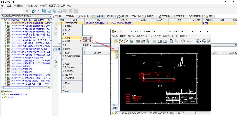 3. 以BOM为纽带,各类技术文档、图纸等信息集中关联展现,实现所有设计数据有效管控。