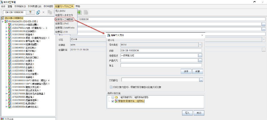 5. 实现二维图档、三维模型、技术文件的批量导入并与零部件自动关联。