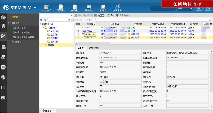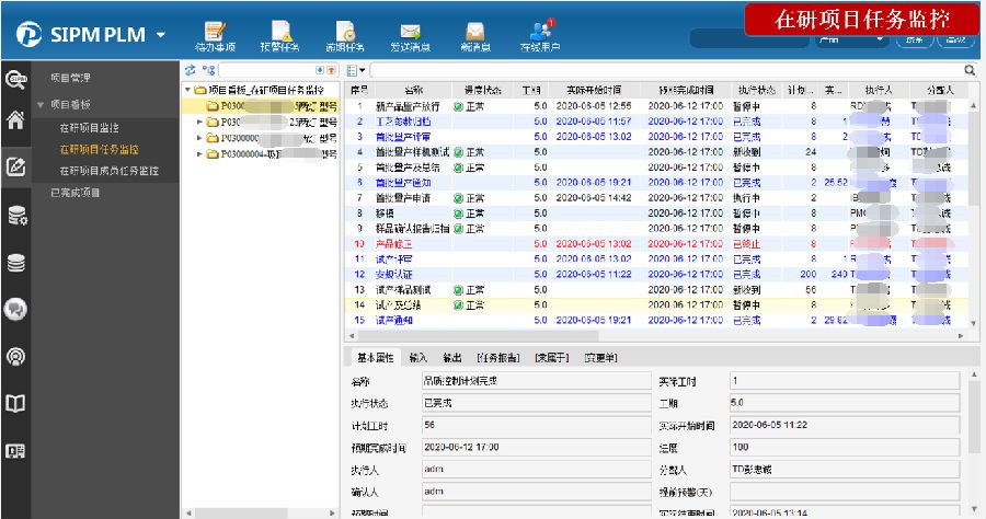 在研项目任务监控:按项目展示正在进行的任务,并展示其任务状态、执行人、预期完成时间等任务信息。