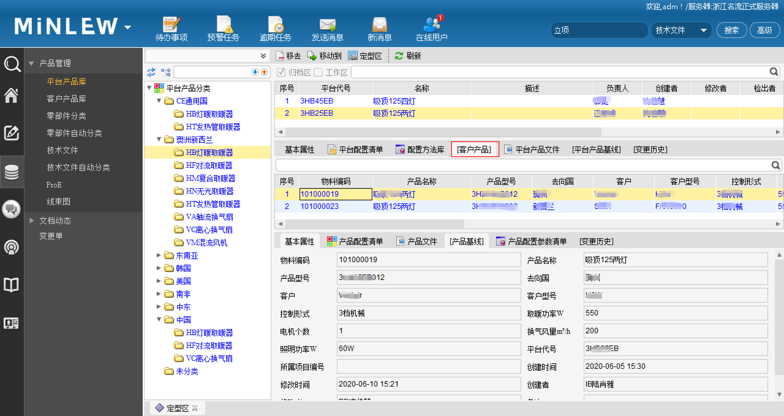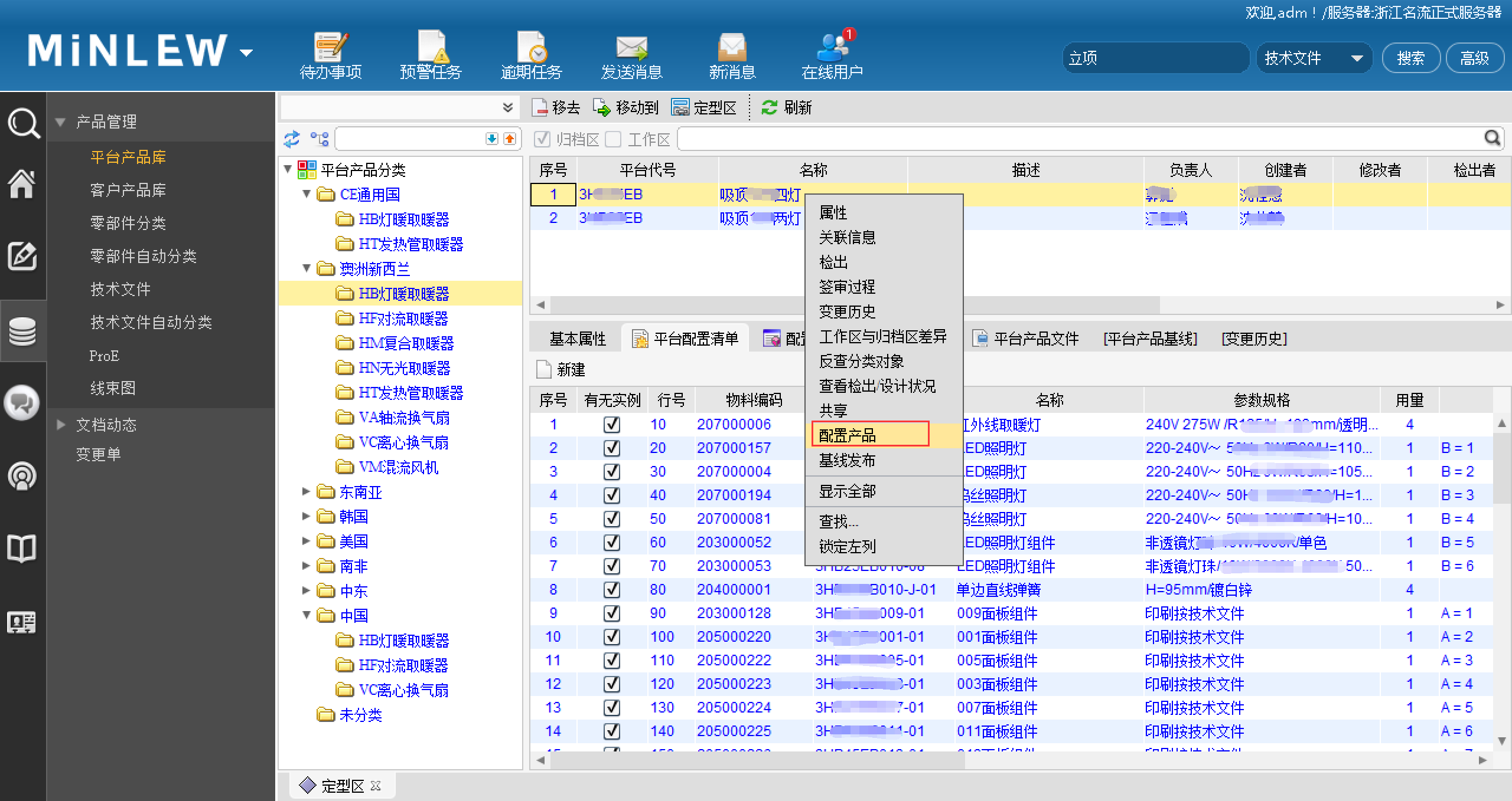 研发人员在系统中创建好产品平台,并做好产品配置清单、配置方法库,并做好选配条件。由业务部门根据客户订单需求,进行客户产品的选配。