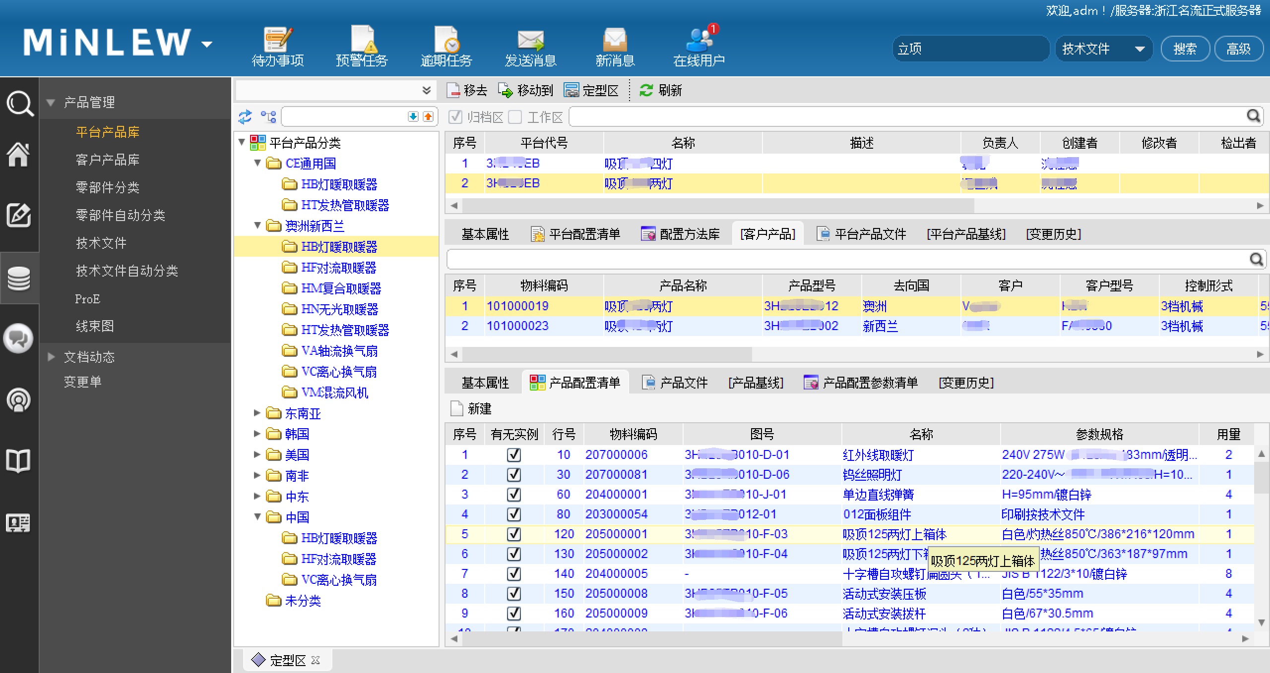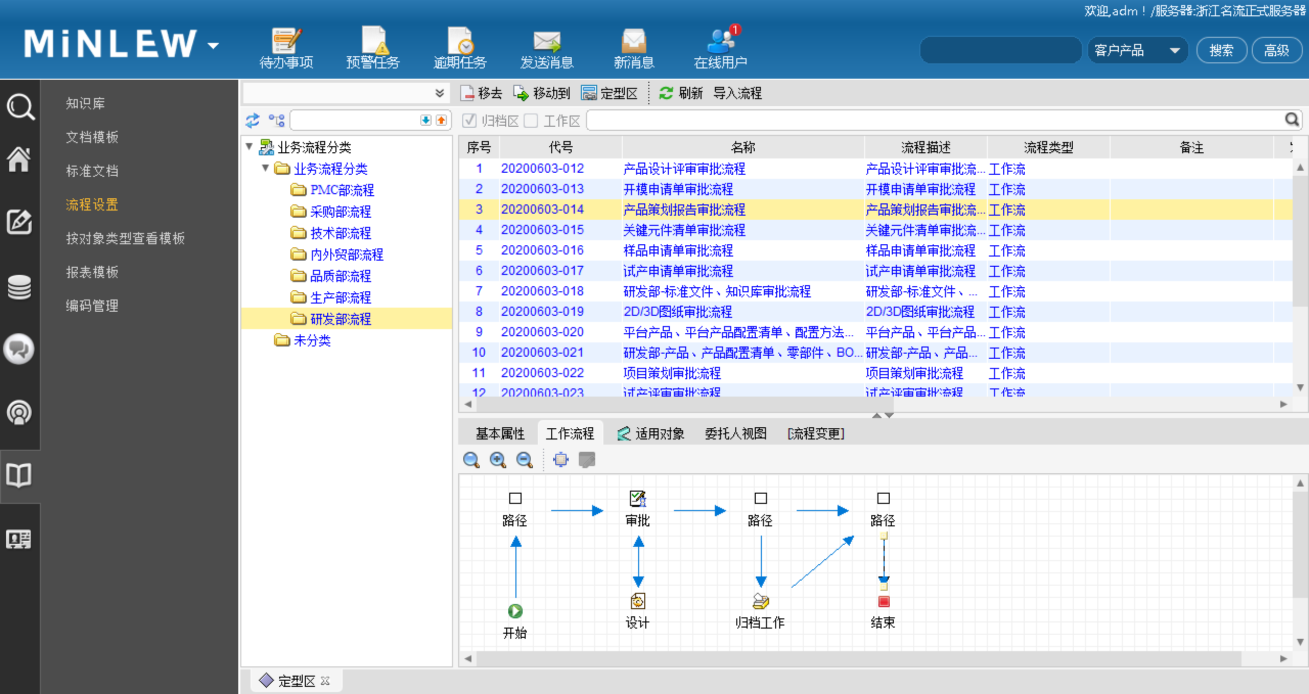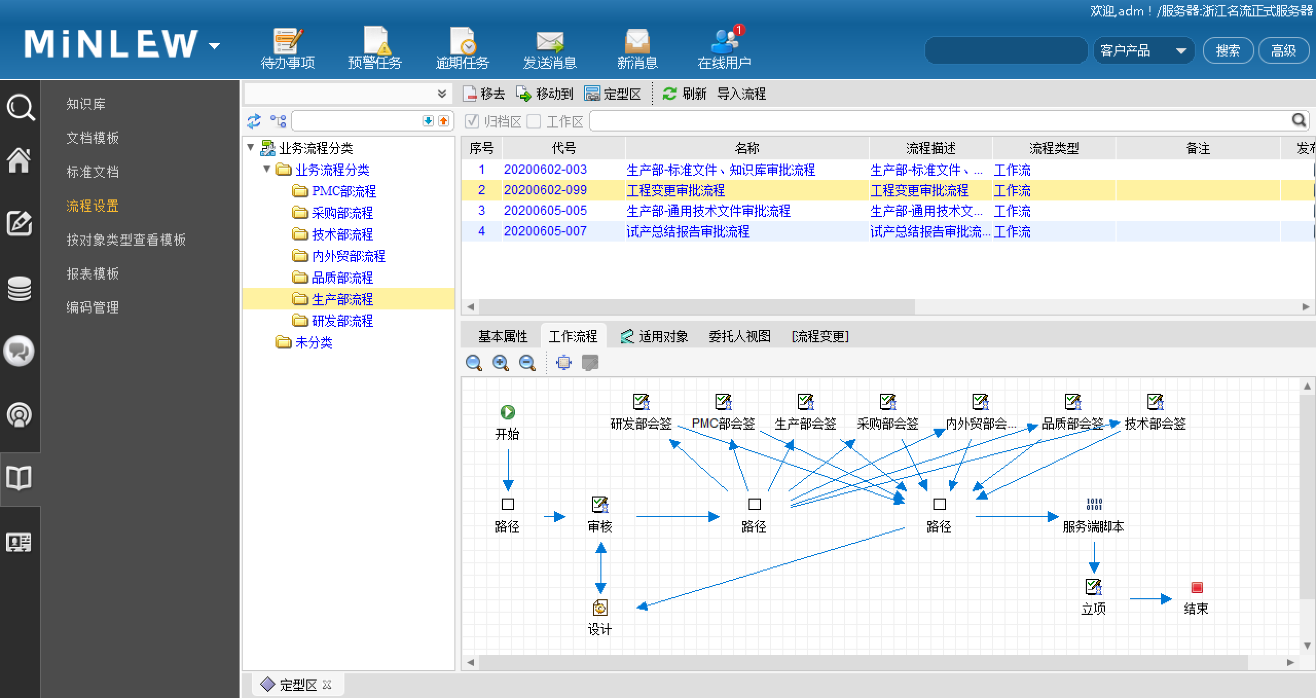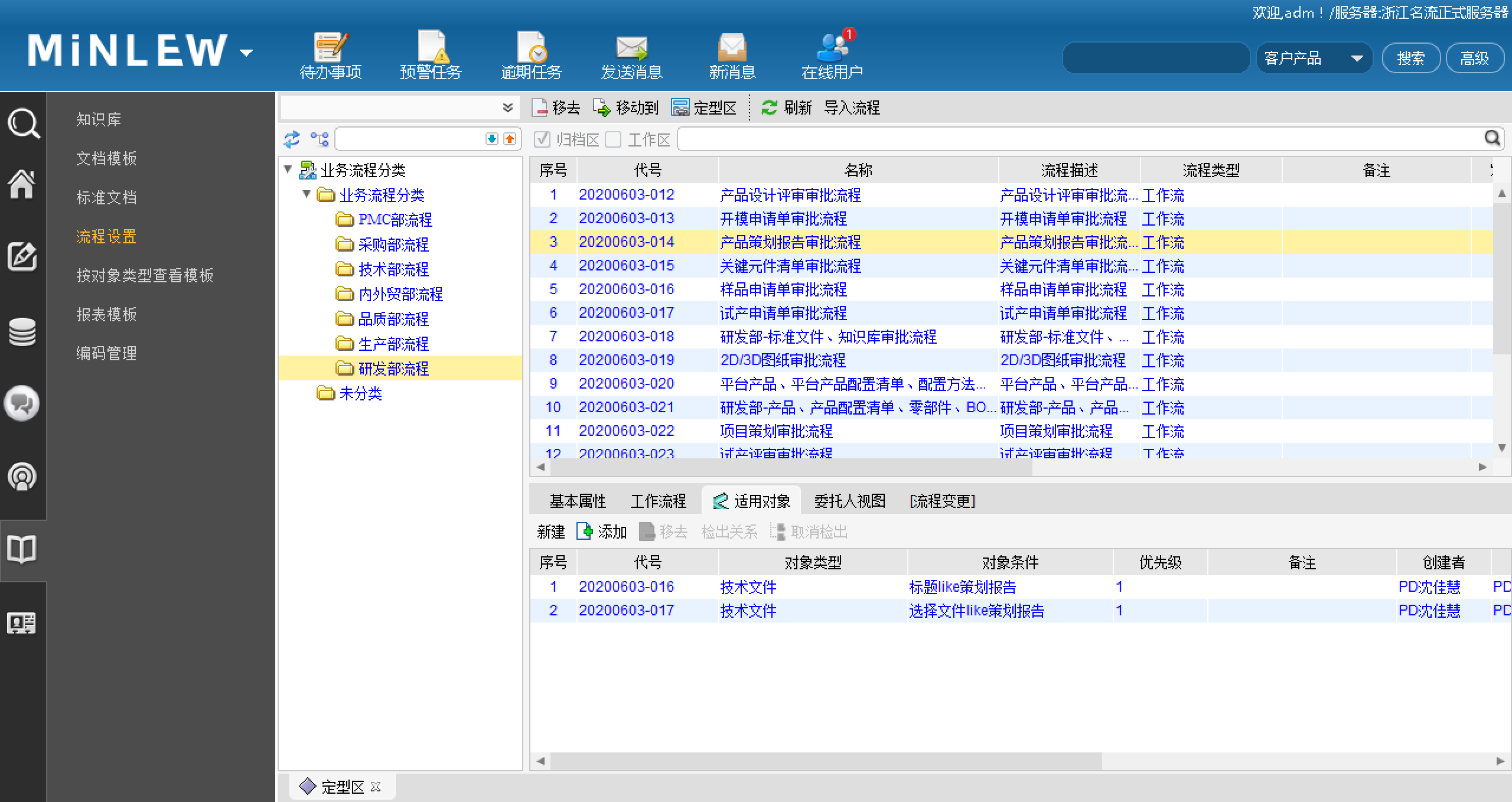 本次PLM实施,通过对各业务单元的流程梳理,遵循“僵化——优化——固化”的原则,并在PLM系统中创建,完整的串起了浙江名流的各业务单元,从而实现了研发全过程的信息化管控。
