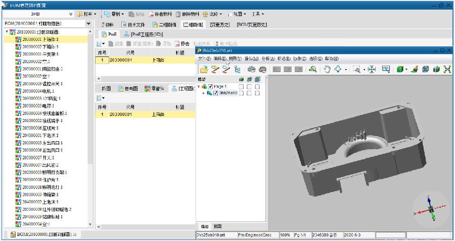 自动生成物料及BOM结构,并关联管理相关模型和图纸。