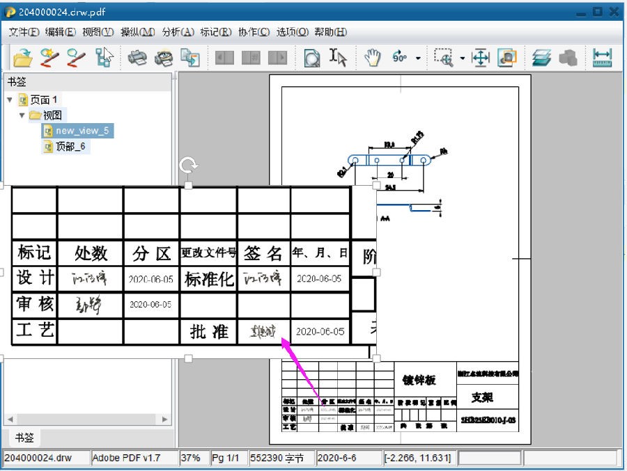 CAD接口程序,自动生成二维图档的PDF文件以供下游系统浏览,并根据审批流程自动生成电子签名,以确保图纸有效性。