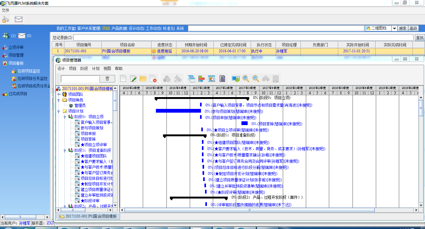 通过SIPM/PLM的实施建立和固化了项目流程,实现从项目策划到批量生产的全过程管理:
