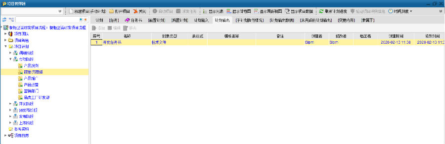 ◆ 模板的内容:包括项目成员、计划内容、计划间关系及其输出项;