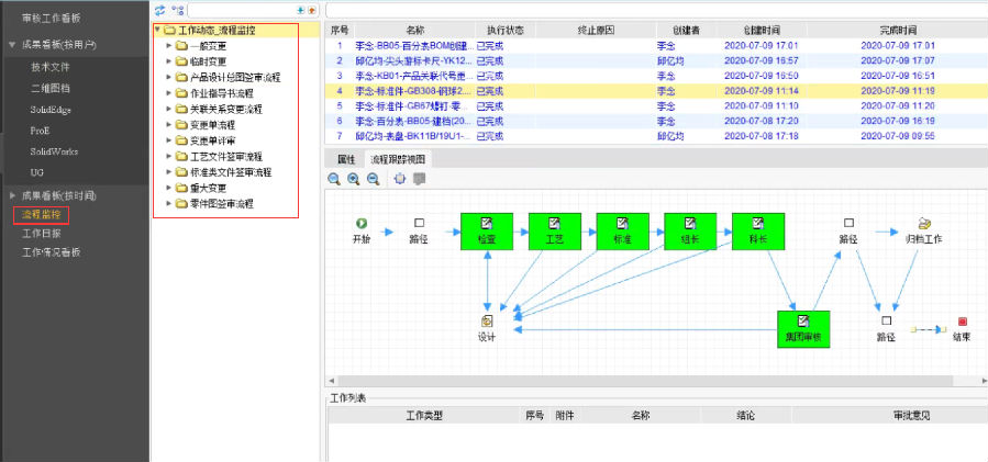 利用SIPM/PLM系统的图形化签审流程功能,将优化后产品数据审核流程通过系统进行固化,建立了设计文档数据标准化要求,同时图形化的工作流可以直接打开文档、图纸审核查看并清晰的监控签审流程的进度,保证了产品开发图纸、文档按标准化要求进行控制,确保产品的质量可靠性。