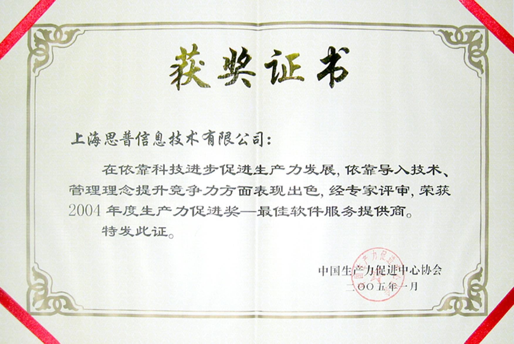 2005-01-12 中国2004年度生产力促进奖—最佳软件服务提供商