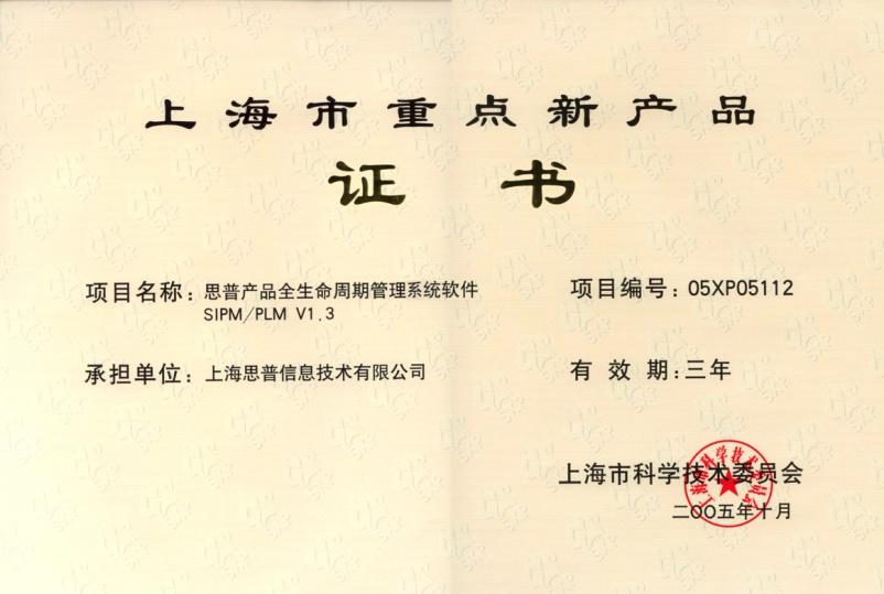 2005-10-20 思普荣誉 上海市重点新产品