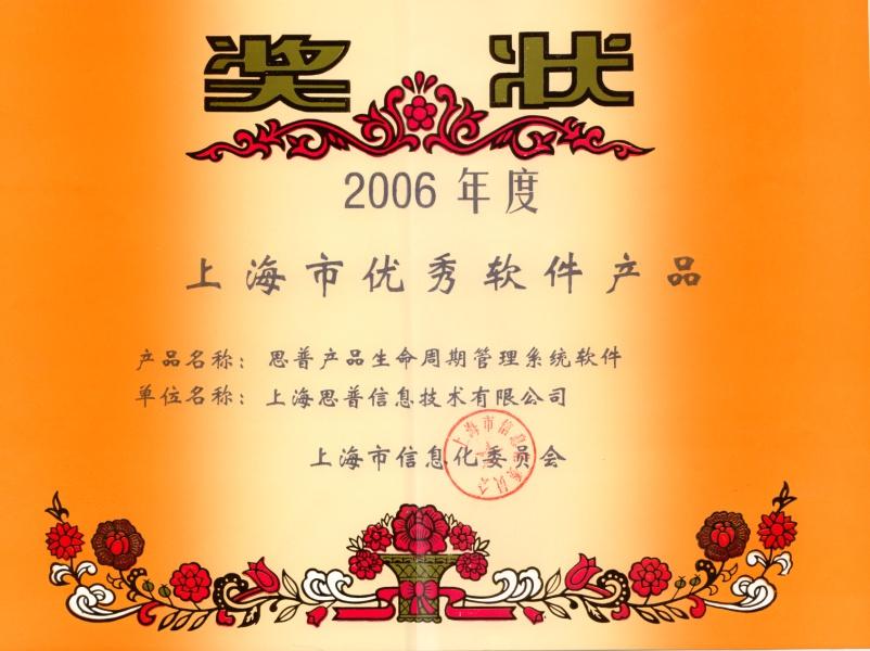 2006-12-13 思普荣誉 上海市优秀软件产品