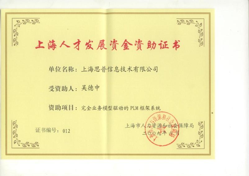 2009-06-16 思普荣誉 上海人才发展资金资助