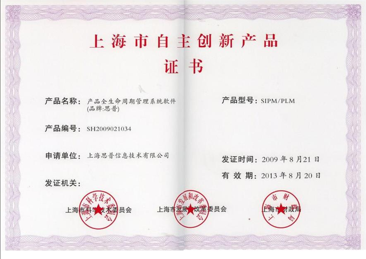 2009-08-21 思普荣誉 上海市自主创新产品